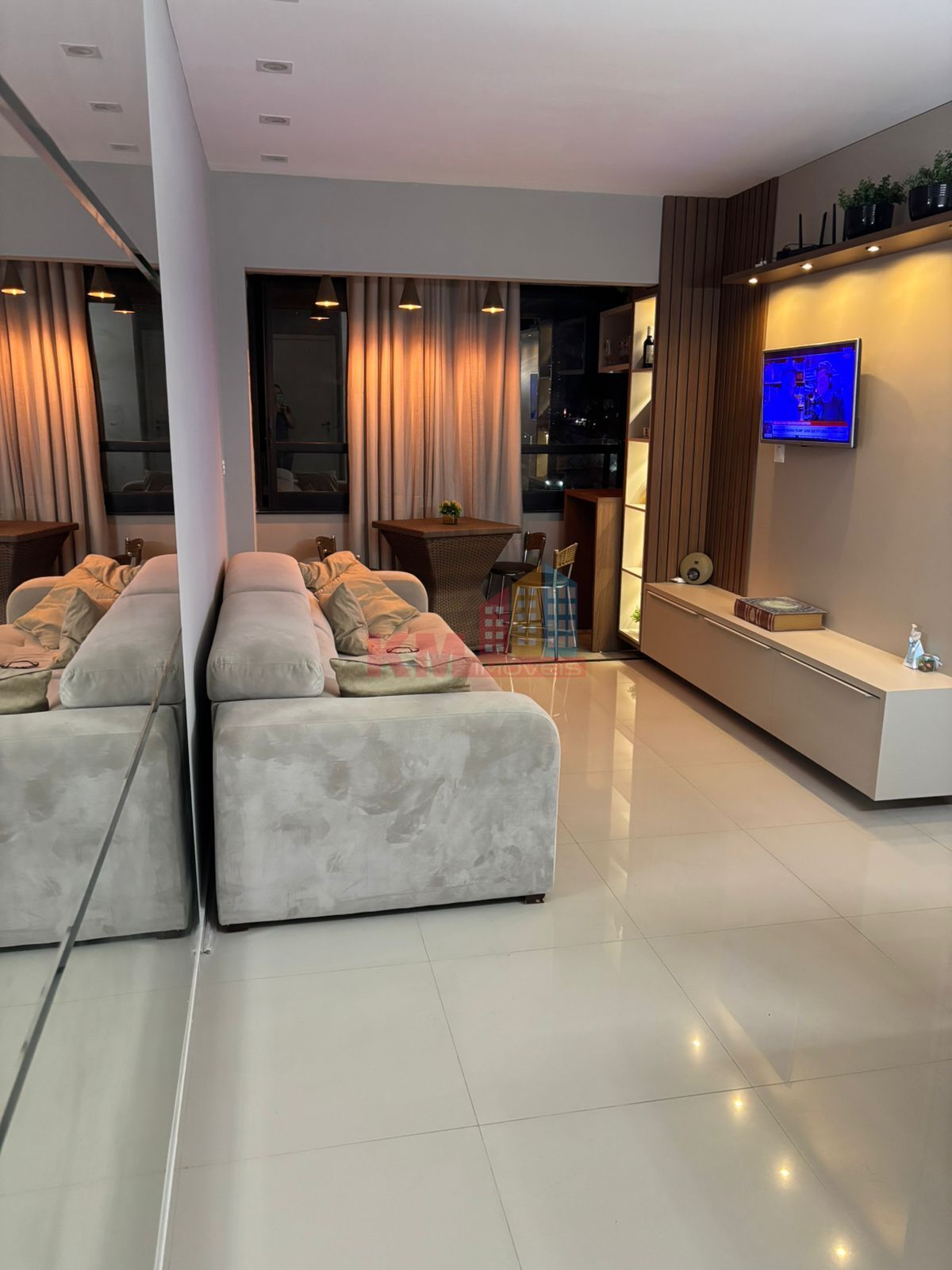 O apartamento possui uma planta bem distribuída, com 3 quartos, sendo 1 suíte, além de um banheiro social. A área social é composta por uma sala de estar/jantar e a cozinha, com área de serviço acoplada, o que otimiza o espaço. O imóvel também conta com garagem,está todo projetado e é virado para o lado da sombra.