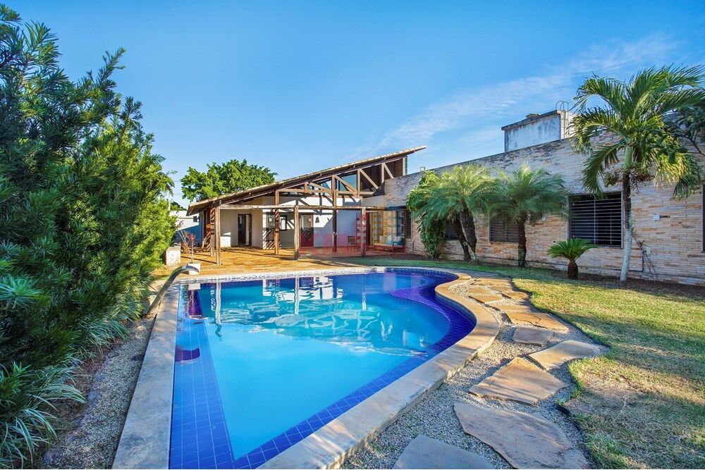 Residência imponente com acabamentos nobres, destacando-se o teto da sala de estar totalmente em madeira Ypê. O imóvel dispõe de sala de estar para dois ambientes, sala de jantar também para dois ambientes e um jardim amplo impecável.
