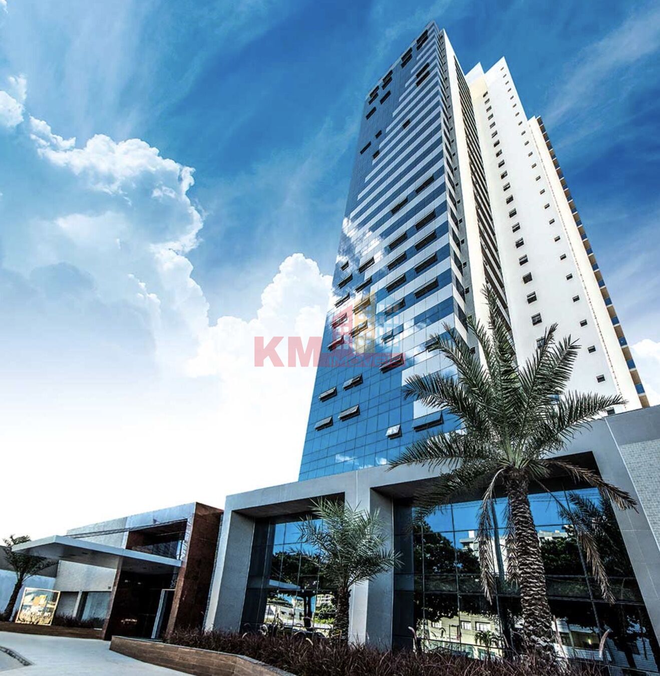 O empreendimento apresenta padrão empresarial moderno, com fachada em cortina de vidro refletivo de alto desempenho, recepção/lobby e estrutura preparada para operação profissional.